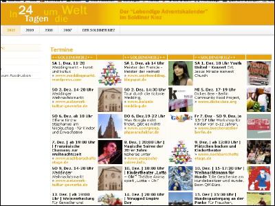 Das erste Jahr war der lebendige Adventskalender ein großer Erfolg. Auch in diesem Jahr wird er wieder stattfinden, noch stärker mit Blick auf all die Länder und Nationen, die im Soldiner Kiez vertreten sind. Es ist dazu eine eigene Webseite entstanden: www.in-24-tagen-um-die-welt.de. |